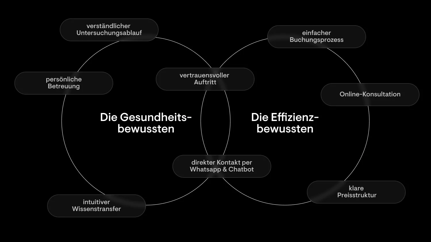 Die User Experience vereint einfache Abläufe und relevante Informationen zu einer intuitiven Plattform. Ein klar strukturierter Untersuchungsprozess schafft Orientierung, erklärende Inhalte machen medizinische Themen verständlich. Persönliche Elemente wie gezielte Call-to-Actions, Kontaktmöglichkeiten und Beratung entlang der Terminbuchung stärken Vertrauen und senken die Schwelle zur Buchung.