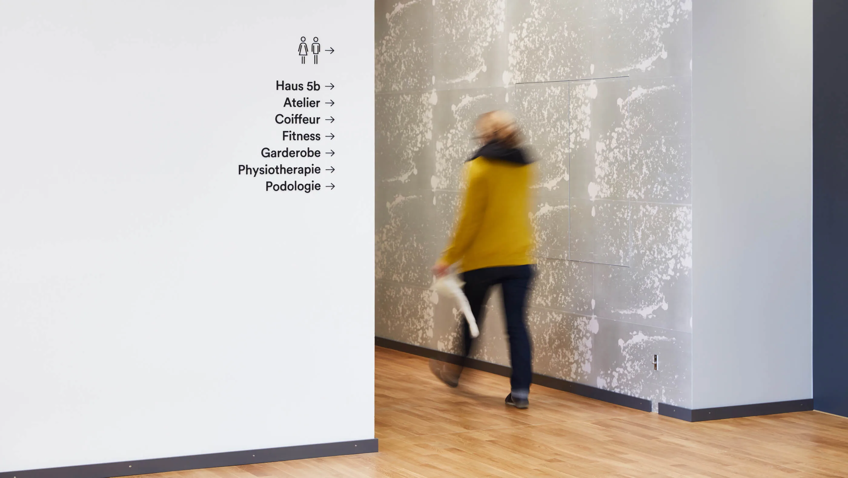 Bitte hier lang: Klare Signaletik leitet Bewohner- und Besucher:innen zum Ziel.