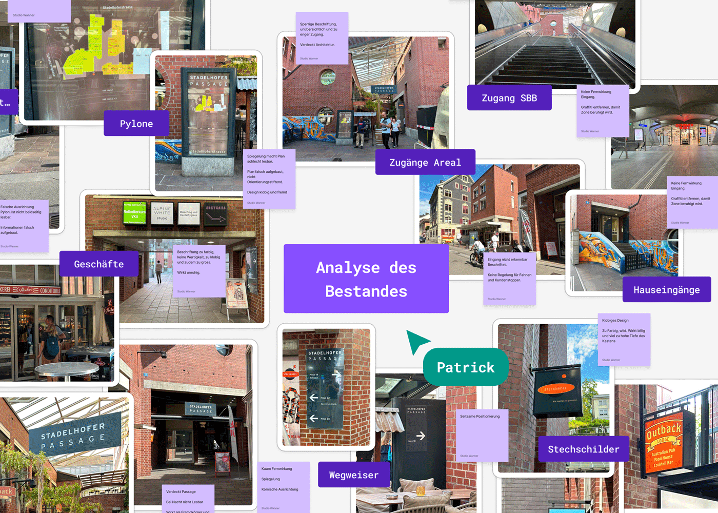Zwischen Bahnhof Stadelhofen und Sechseläutenplatz liegt die Stadelhofer Passage als wichtiger Verbindungsraum im Zentrum von Zürich. Im Auftrag der Anlagestiftung Pensimo entwickelte Studio Wanner eine neue Signaletik, die Orientierung, Ruhe und Klarheit in die belebte Passage bringt. Entstanden ist ein neues Designkonzept, das sich unaufdringlich in die bestehende Architektur einfügt und die räumliche Qualität des Ortes stärkt. Formen und Materialien des Bestands werden aufgenommen, die Farbigkeit reduziert. Lichtführung, klare Typografie und eine intuitive Wegleitung schaffen ein stimmiges Zusammenspiel von Orientierung und freundlicher Atmosphäre.